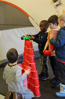 The magic happens in our room which opens up onto the playground. Friends buzz in and out like busy bees painting, building with cardboard, playing games, and making puzzles. We grow silkworms and raise chicks in the spring. We also love a good dance party!
